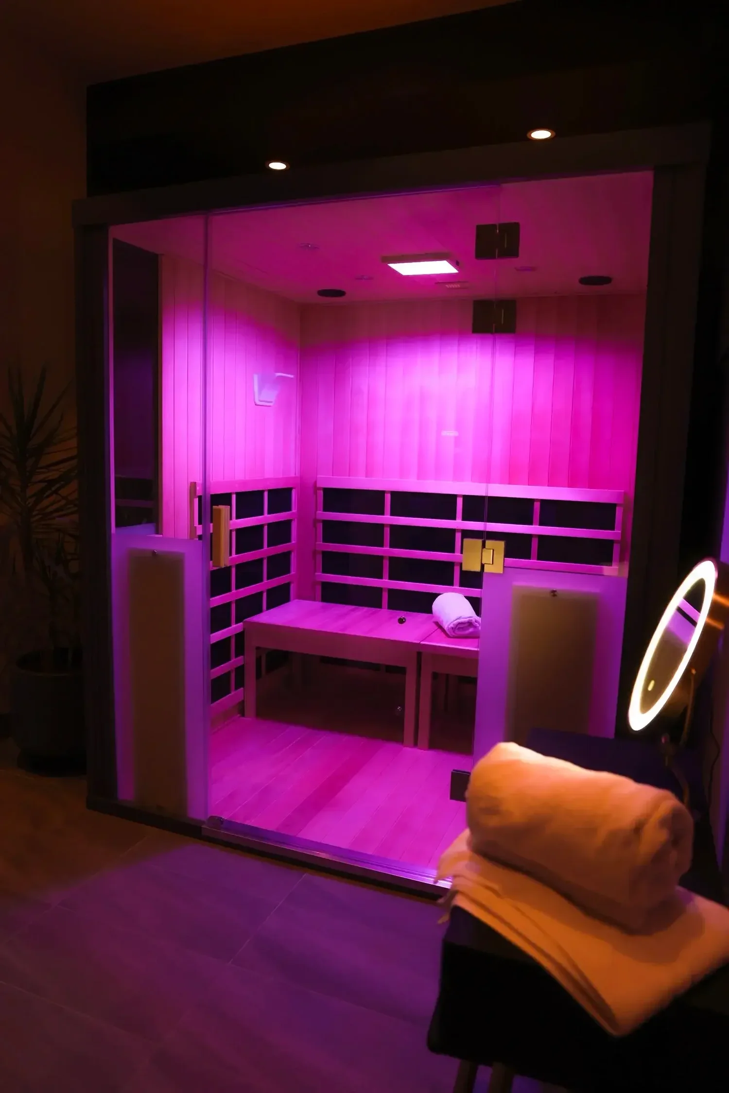 We took contrast therapy and elevated it—pairing cold water immersion with infrared chromotherapy + salt sauna sessions, all within your own private, luxury suite.