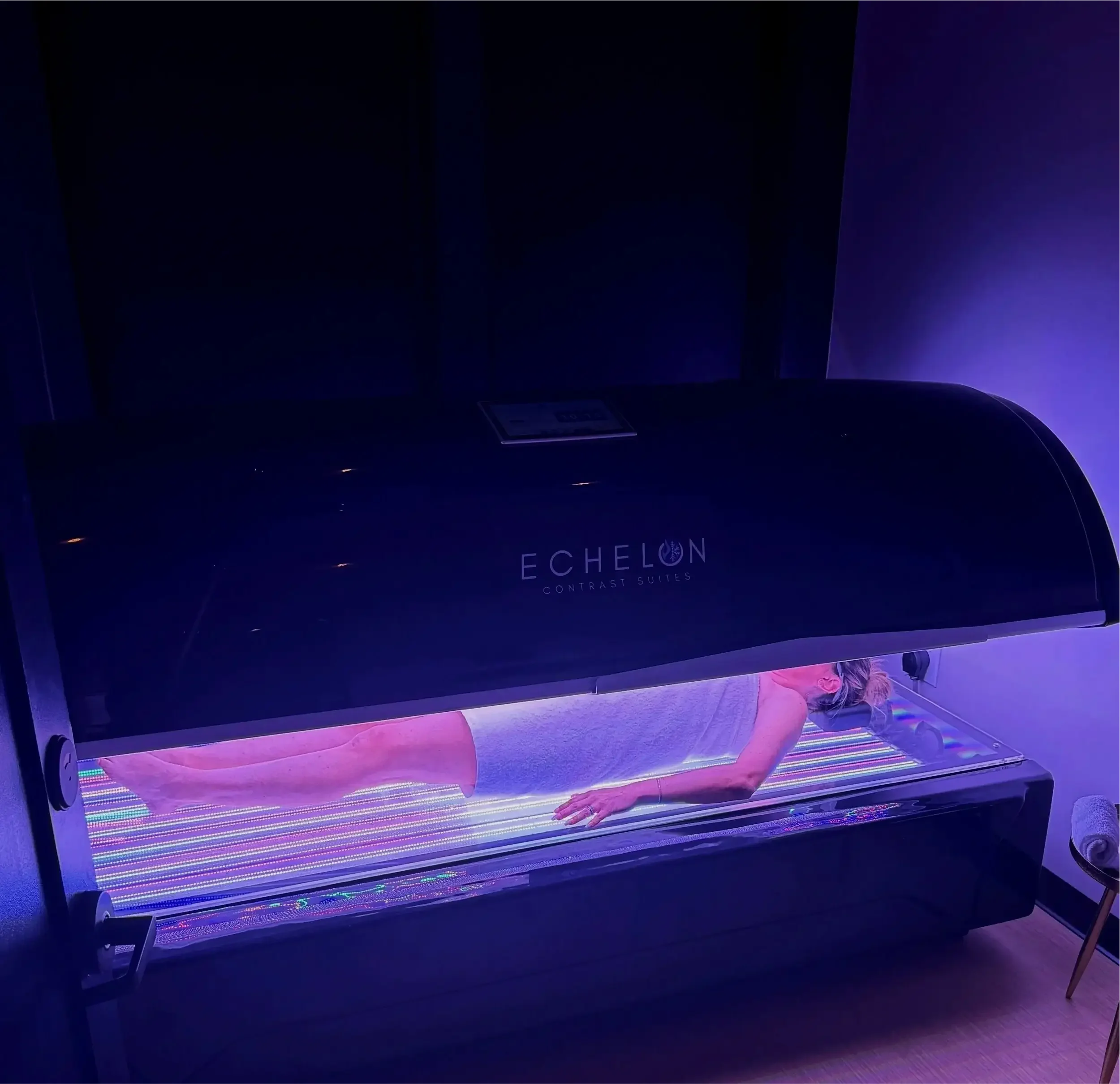 Unlike traditional clamshell-style beds, which suffer from uneven light exposure and energy loss, Echelons’ bed delivers 360° light exposure, surrounding the body completely for uniform light distribution. The result is a superior, fully immersive experience that maximizes outcomes - making Echelon the only choice in light therapy.